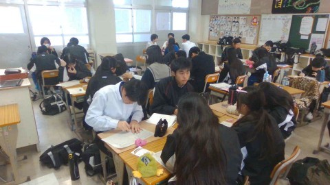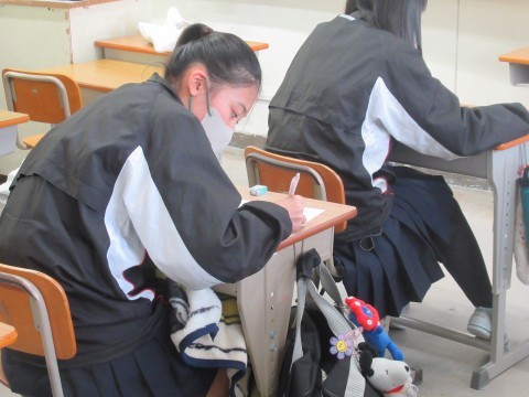 (放課後、あるクラスを覗くと一生懸命勉強している様子が。受験まであまり日がないそう。最後まで追い込みます)