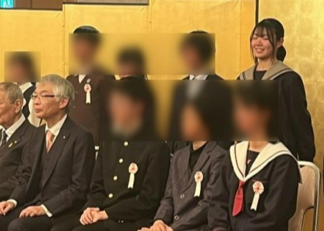1月16日(金),ホテルアゴーラリージェンシー堺にて,第75回「社会を明るくする運動」作文コンテスト表彰式が行われました。本校2年生「市川 結南(いちかわ ゆいな)」さんが中学校校長会賞を受賞し表彰されました。担任の先生とも記念写真をとり,保護者の方とも受賞を喜びあいました。