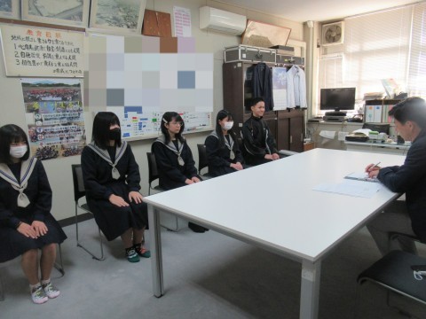 面接練習を行いました!校長先生・教頭先生お二人に協力してもらい、「中学校で頑張ったこと」「次のステージ(中学卒業後)で頑張りたいこと」「あこがれている人」を中心に質問に答えました。ドアのノックの回数・椅子への座り方・質問の受け答え・声の出し方…様々なことに気を遣いながら頑張りました。終わってからは「めっちゃ緊張した~!」「本番までにできてよかった!」などなど…感想を思い思いに言ってくれました。
