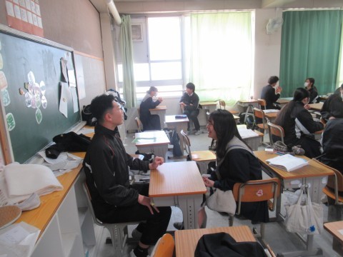 そして…体育委員から2学期最後の「クラスマッチ」について説明。まだまだ服装が乱れている人もいますが、「ここからクラスマッチに向けてやるべきことはしっかりやっていきましょう!」という声掛けも。そのあとは作戦会議!誰がどの競技に出るのか、リレーの順番は…などなど、各クラスが相談しているところ…