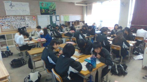 12月8日(月),先週の寒波はどこへ?今日は比較的過ごしやすい気温でした!写真は今日の6時間目の様子です!月曜日の6時間目は気持ち的につかれるね~・・・。