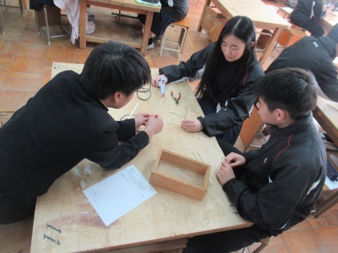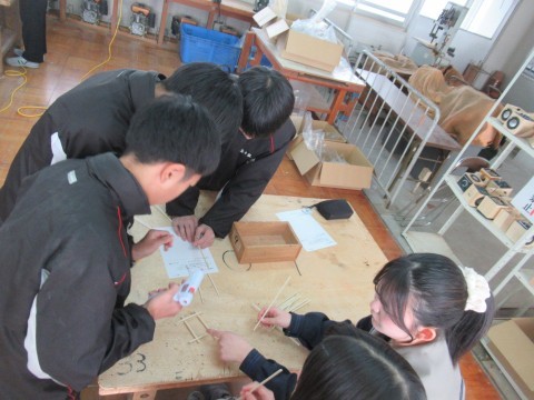技術の時間では、「フォトフレームラック」作りに取り組んでいます。