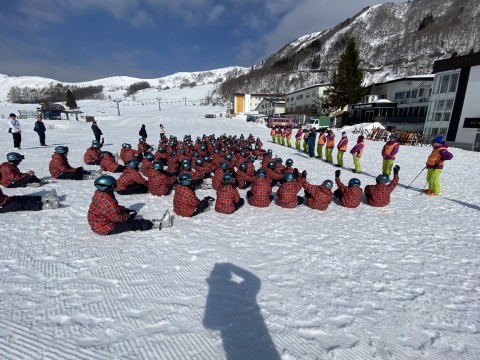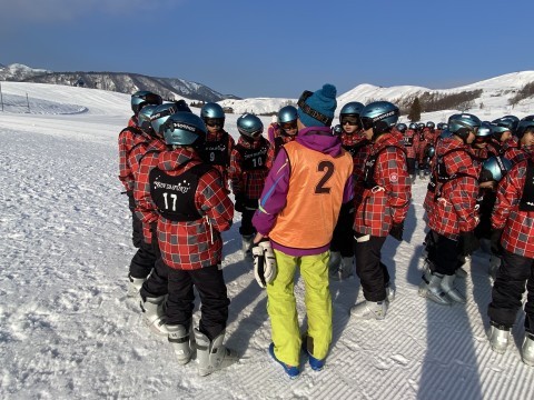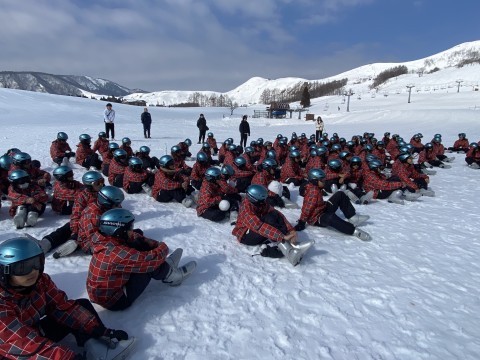 スローガンは、「ルールを守って協力し合い、思い出に残る楽しいスキー実習にしやんかい!!」です!