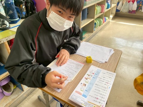 6時間目の学活の時間を使って、来週月曜日に実施する「面接練習」の練習を行いました。練習当日は校長先生と教頭先生に面接官役をしてもらいます。『中学校で頑張ってきたこと』『将来っチャレンジしたいこと』『次のステージでやってみたいこと』などをはっきり言えるように、土日を使って練習をしておきましょう!