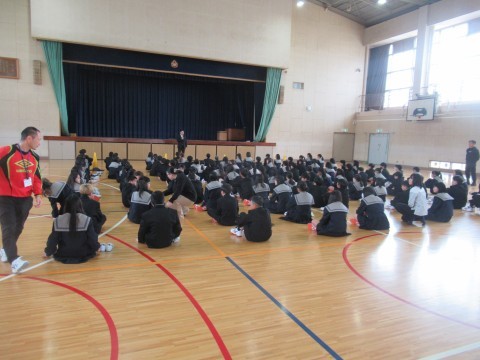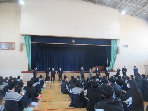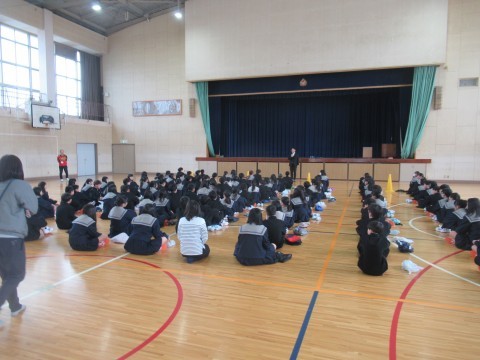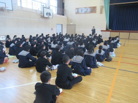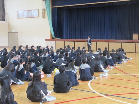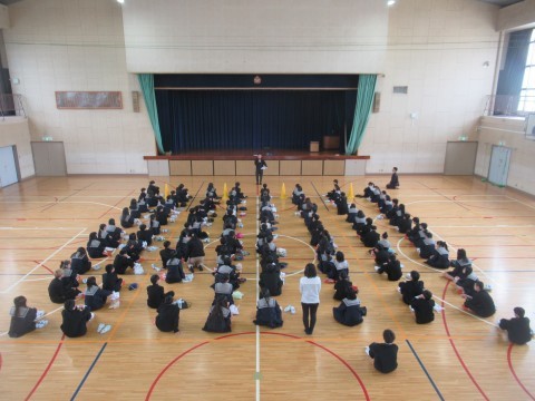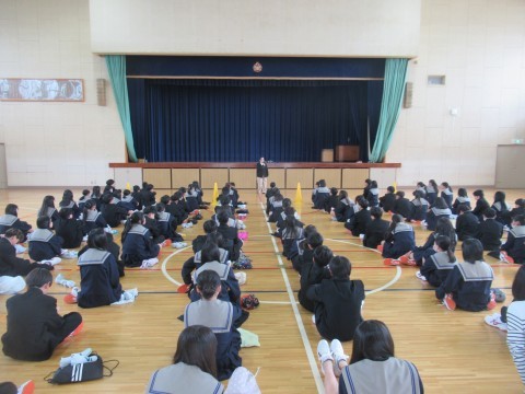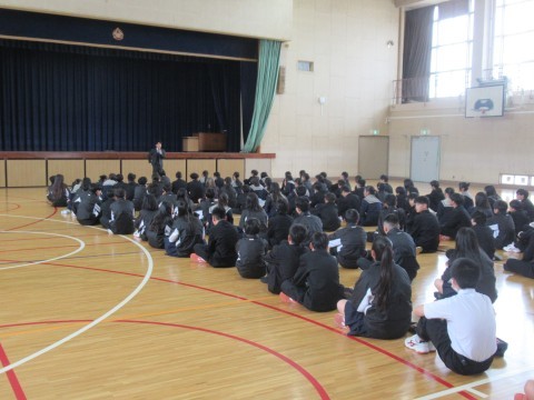 2年生になって、初めての学年集会。今日は年度初めということで、学年の先生方全員からお話しがありました。