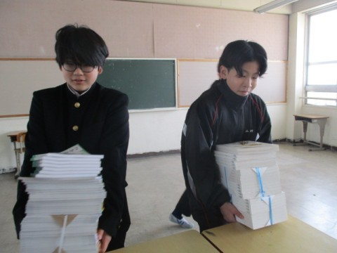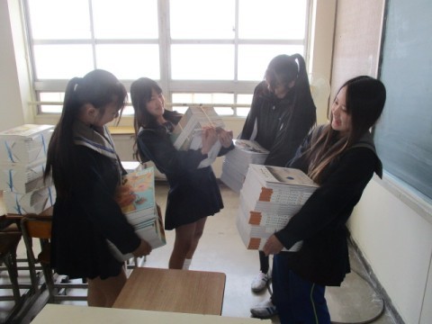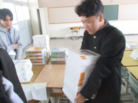 新しい教科書が配布されました。運ぶのを手伝ってくれた人、ありがとうー!