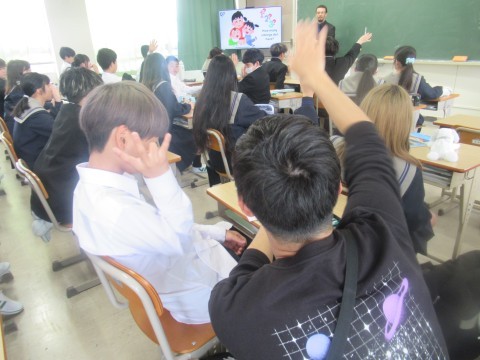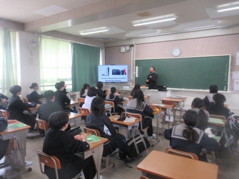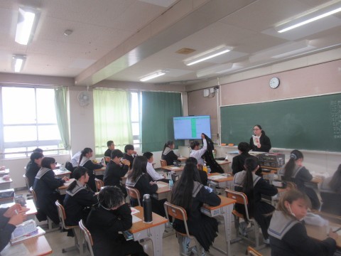 今日の英語は新しく来たNS(Native speaker)の先生の授業です。新しく来た先生にみんな興味津々!「名前は~?」「どこ出身?」「彼女いますかー!」などなど…授業外でも質問がたくさん出ました。今日は1年生weekでしたが、次週は他学年。毎週水曜日に八田荘中学校に来ますので積極的に会話してくださいね。