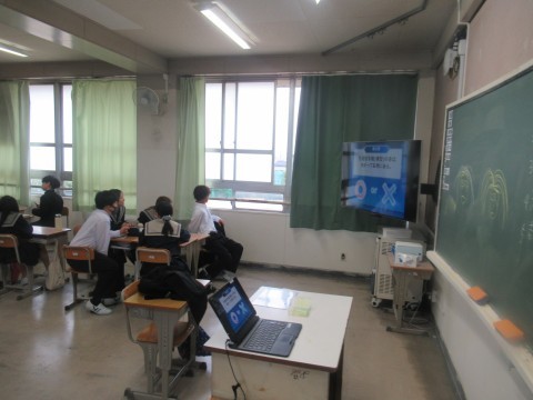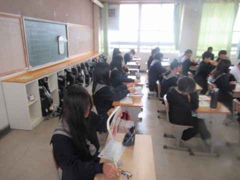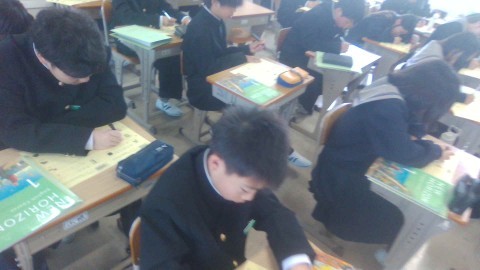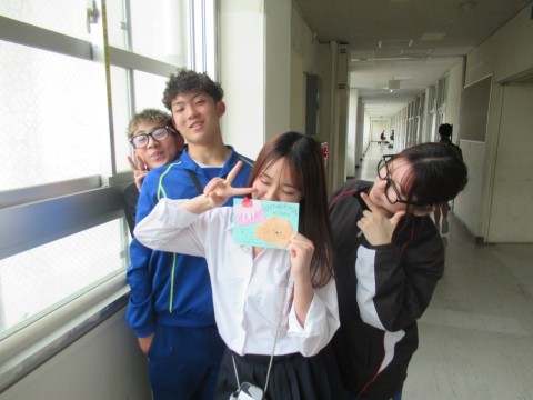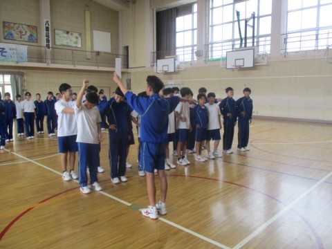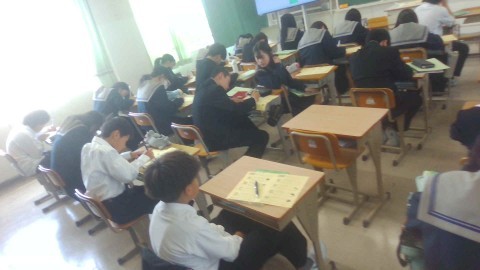 英語の授業では初めてのペアワークとして、自己紹介ゲームをしました。この学年のすごいところは、「知らん奴やからやりたくない!」という人が非常に少ない所です。good!初めての人と話すのは緊張するかもしれませんが、1からの関係づくりとして頑張りました。