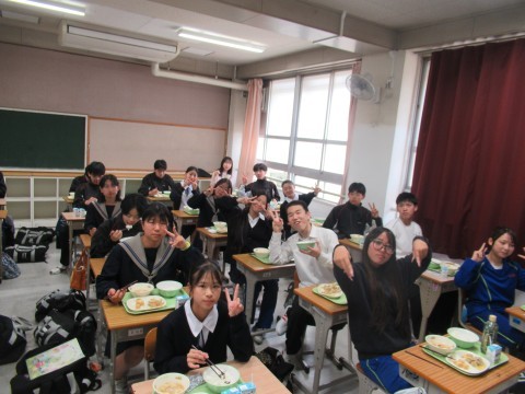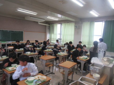 今日の昼食はお弁当!ということで今日は好きな席で「いただきます!」準備をしてくれたおうちの方に感謝です。