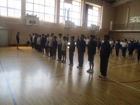 校長先生から「クラスを大事にしよう」 生徒指導主事より「4月の月間目標『ものを大切に』・節目の式典を意識して、身だしなみを整える・学校のルールを確認しよう」 そのあとは1年生だけ残って「この良い状態をキープしよう・上級生のいい所をマネしよう」という話をしてもらいました。ちょっと話が長くて飽きてしまう人も?!いやいや、最後まで話を聞けたので、十分?!まぁ、49期生は始まったばかり。これから、これから。
