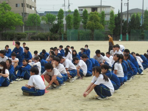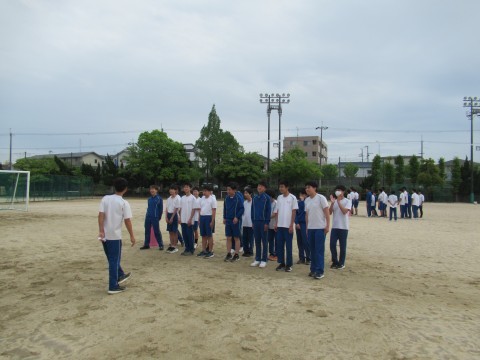 保健体育の授業では、集団行動発表会の練習です。さて、現状一歩リードはあのクラスか?いやいや、どのクラスも、はじめてのクラスマッチに意欲的です。頑張っていこう!