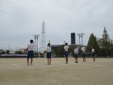 6時間目には、全体練習が行われました。天候が心配されましたので、短縮バージョンで。学校を代表して、朝礼台に上がる人、頑張れ。