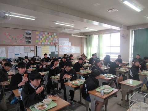 給食も食べて、午後からの試験も頑張れ、46期生!