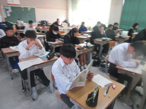 英語の授業では音読に取り組んでいます。3年生の教科書になって、本文の分量が圧倒的に増えていて読むのも一苦労…今までの時間では読めなくなってきているようなので、ペア・グループで工夫をして読んだり、時間を延ばしたりして読み切れるように頑張っています。