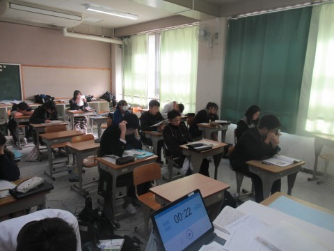 週明けの月曜日です。体育はまだまだデッドヒート!今日はゲーム形式で実践を積んでいるようです。(部活を引退して結構時間もたちます。運動不足の人は、怪我に気を付けて!!)