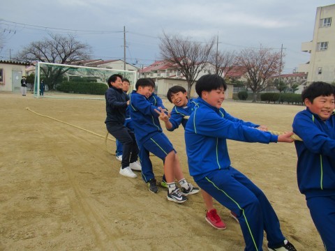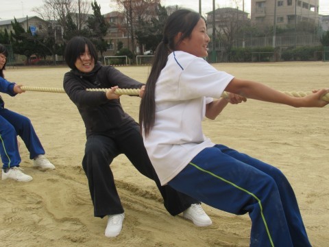 今回の競技は「綱引き」!男子の部、女子の部、男女の部の3つの総合点を競いました!