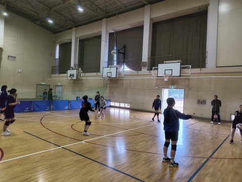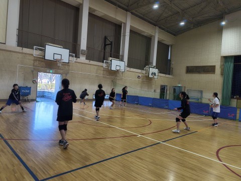 この日は、八田荘小学校から6名、部活動体験に来てくれました。部員の中にも、この時期ちょうど1年前に体験に来てくれたこともあり、時の流れの速さを感じます。今度は自分が教える方になって「すごい!ナイスやん!」「オーバーは、三角形を作っておでこの前でやるといいよ!」「ナイスサーブ!」などなど、的確にアドバイスをしていました。