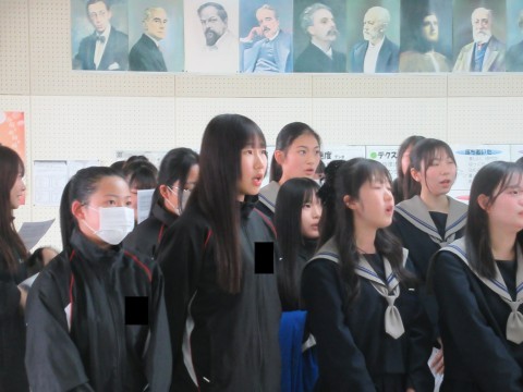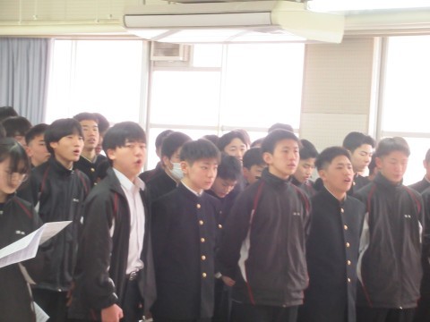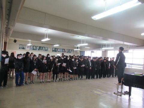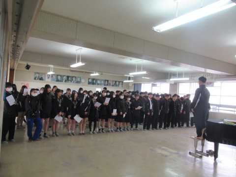 2月25日(水),3年生卒業式の歌練習。やっぱりすごい。先生もこの歌大好きで,ついつい口ずさんでしまいました・・・。