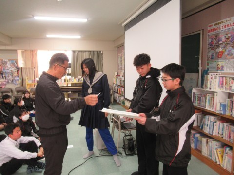 3学期のMVP表彰【2年生】 公開日 2026/03/24 更新日 2026/03/23 2年生 3学期のMVPを表彰しました!➀1番他人のために動いてくれた部門②1番授業の発言をがんばった人部門③1番給食当番がんばった人部門④1番時間を守れていた人部門⑤1番クラスを盛り上げてくれた人部門それぞれクラスに貢献してくれた人たちが表彰されました! +4