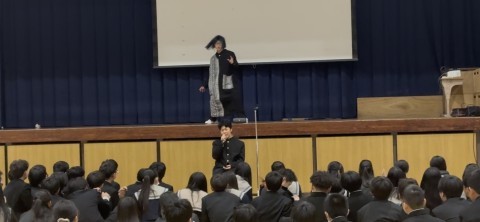 3学期の振り返りムービーの後は、スキー実習の伝説のレクレーションが奇跡の復活!MCも完璧で大いに盛り上がりました!