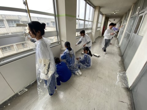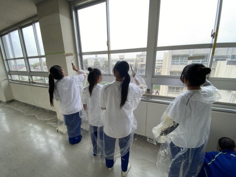 女子ソフトテニス部の1年生が、ペンキ塗りのお手伝いをしてくれました!