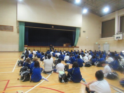 (部活動紹介の前に、先生から話をしました。「集団行動をする上で、みんながみんな好き勝手にはできない」「やりたいこと・挑戦したいことは、やらなければいけないこと・ちょっと我慢することの上にある」ということ。来週からの6時間授業に向けて、それぞれが協力できることを少しずつ。49期は、まだまだはじまったばかり。これから、これから)