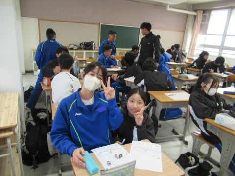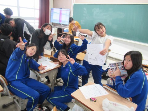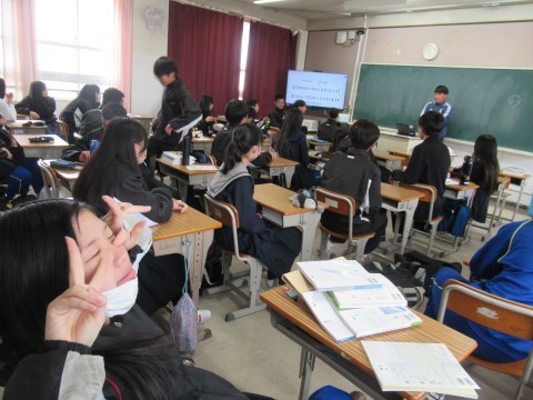 自己紹介カードを作ったり,先生たちの作成したクイズ大会が行われました。