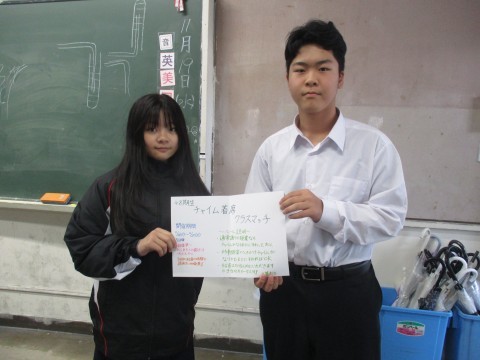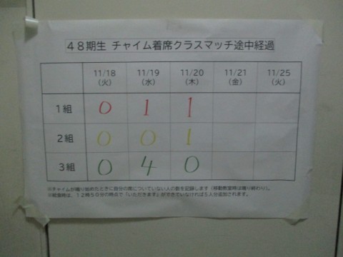 今日から学級代表さん主催の「チャイム着席クラスマッチ」が行われています。
