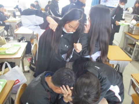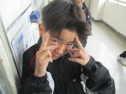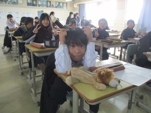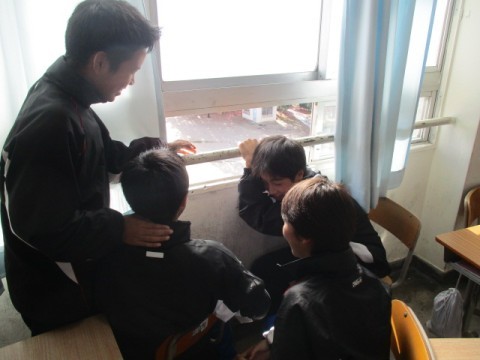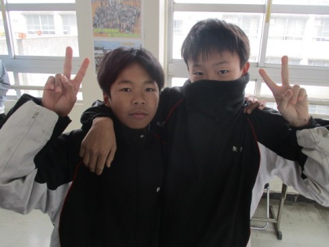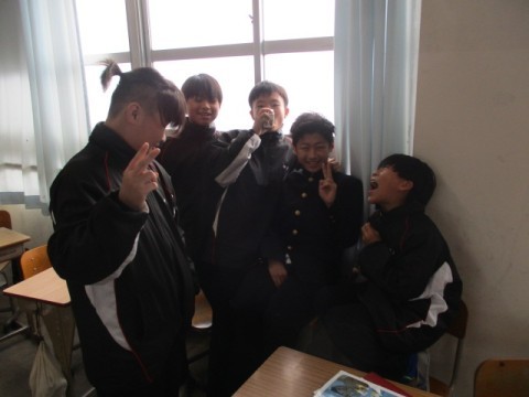 みんな下向いている一枚は、「一番早く学ランのボタン留められるか選手権」のようすです。