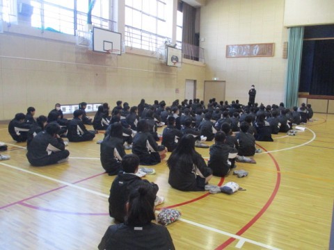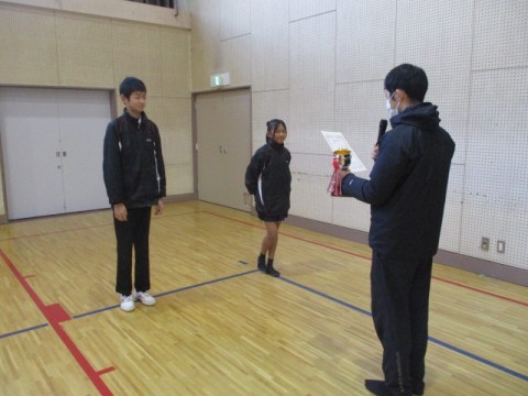 全校集会の後の学年集会にて、チャイム着席クラスマッチの表彰を行いました。
