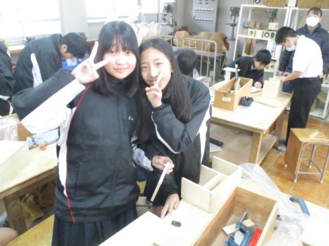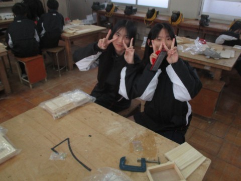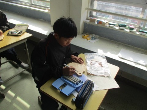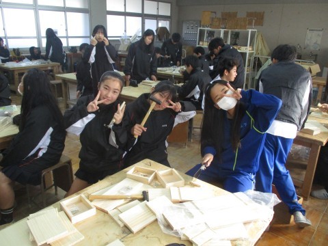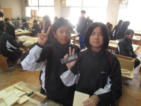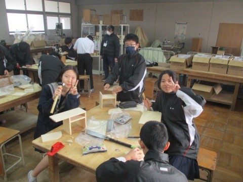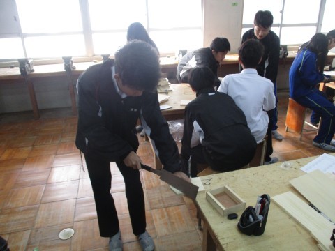 技術の時間では、「フォトフレームラック」作りに取り組んでいます。