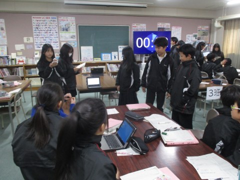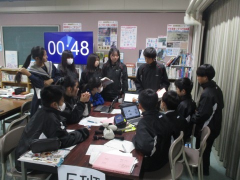国語の授業では、調べ学習の発表に向けての取り組みを行っています。今日はリハーサルを行いました。