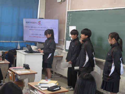 「戦争と○○」というテーマで、各グループが自分たちでテーマを考えて発表をしました。
