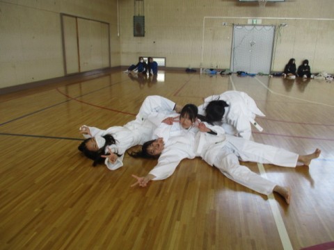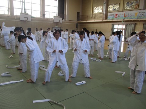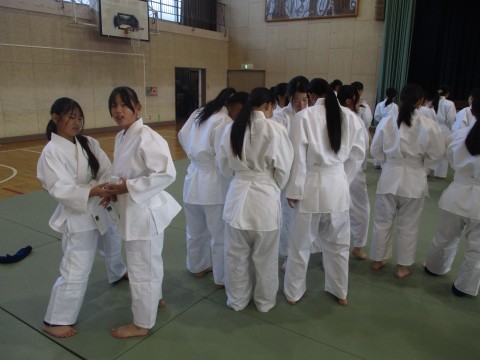体育の授業の様子です。柔道着にも少し慣れてきたかな??
