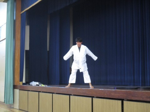 さて、体育の授業では柔道がはじまりました!1日目の今日は柔道着の着方から確認しています。
