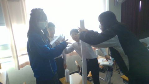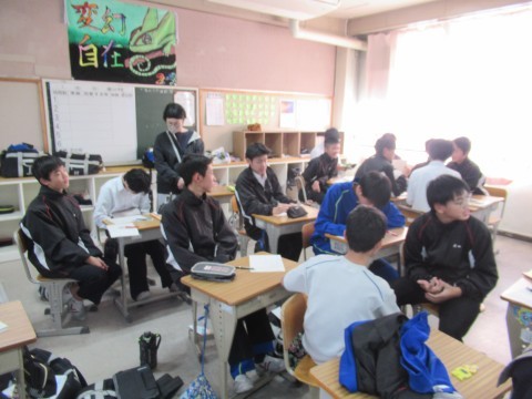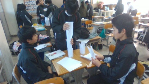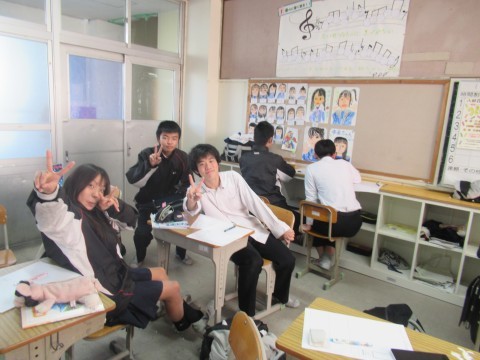 響かせてくれました。最初は音程が合わず苦戦したり,集中できない人がいて,クラス全体で