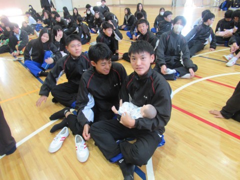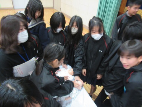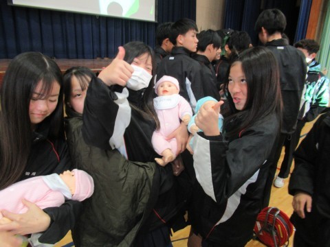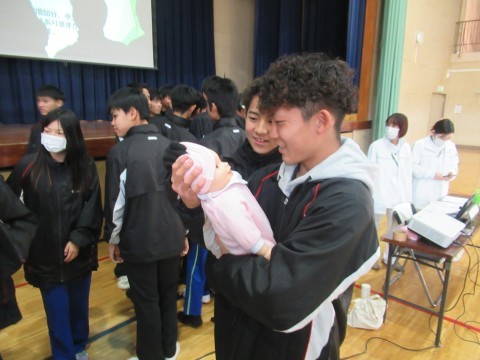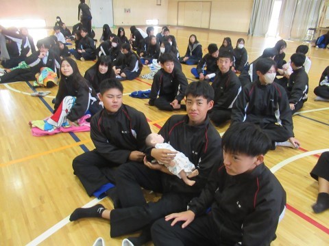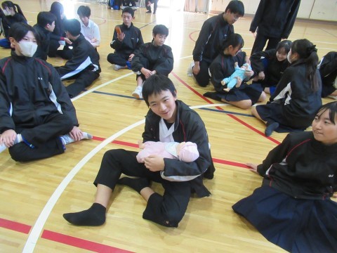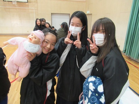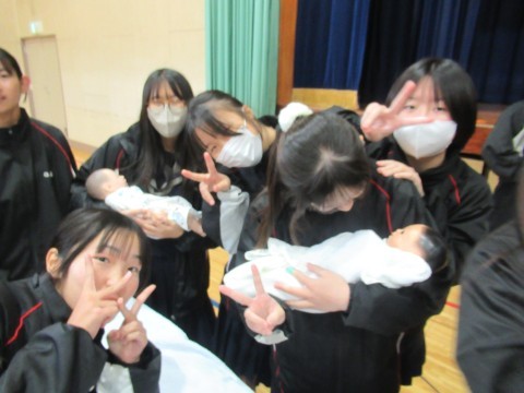 最後に赤ちゃん人形の抱っこ体験も行い,みんな楽しんで,少し小さいパパ,ママの