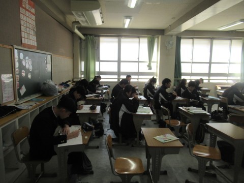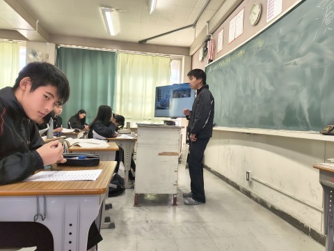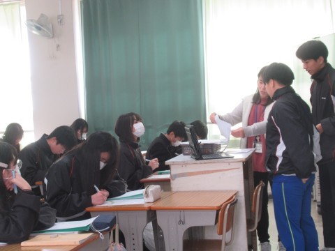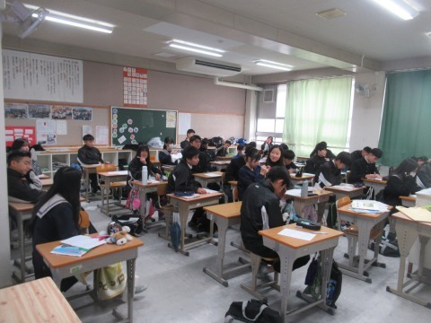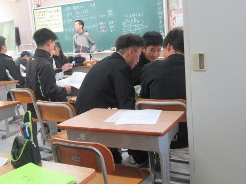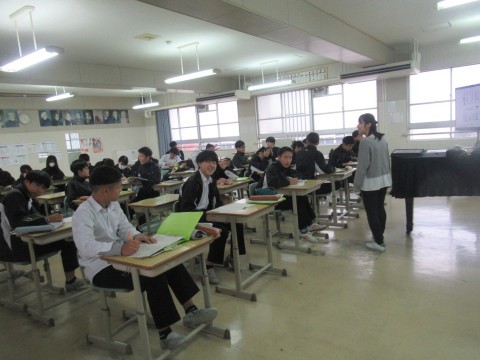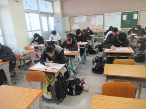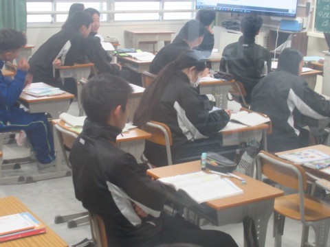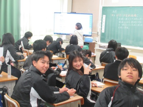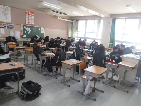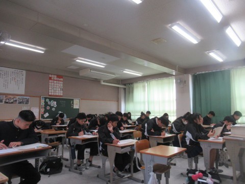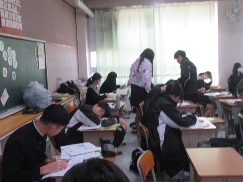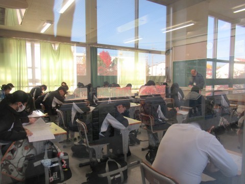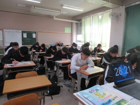 明日より今年最後の(学校の)テスト、期末テストが始まります。そんな3年生の授業の様子をお届け。