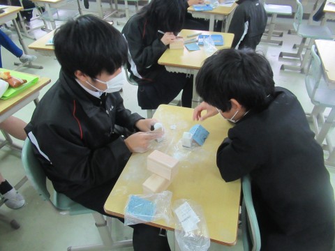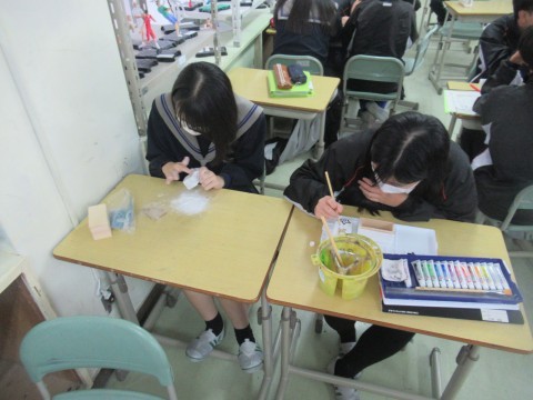 3組の数学は少人数授業。受験も近づいてきて、数学を苦手とする生徒も、TVの前まできて先生に質問をしていました。2組の理科の授業は、朝1バンだったからか、少し眠そうにしている生徒も。カメラに気づいて途中からピースをする人もいました。1組は美術の授業。篆刻が終わった生徒は、箱のイラストに色を塗る作業をしていました。