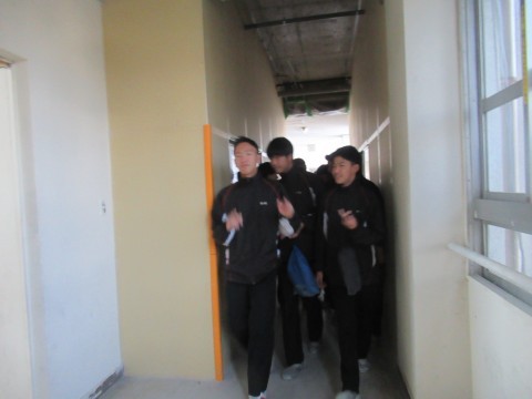 (昼休み。いつもよりボールを借りに来る生徒が多いなぁ…と思っていると、男女混合で練習をしていたり、他クラス混合で練習をしていたり…46期の絆をまた一つ深めているシーンがありました。でも、じっと見ていると、クラスマッチの「バレー」に向けて、本気の練習になっている模様。グラウンドで間違ってもフライングなどしないでくださいね!)