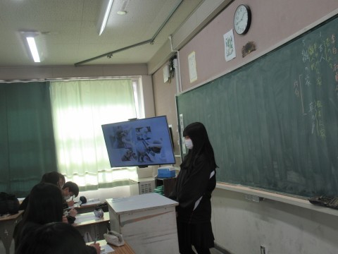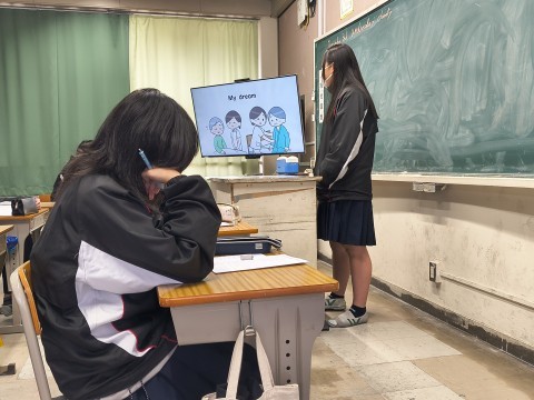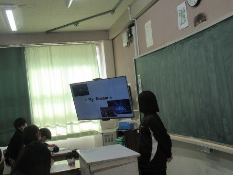 英語の授業では、3年間で最後のスピーチ!今回は「将来の夢」「私の大切な人・もの」「印象深い場所」の中から3つを選んで、原稿を書き上げてきました。今回は全員暗記!成績に入るから…という理由ももちろんありますが、胸を張って堂々と自分の意見を言える生徒になってほしいなと思い、みんなに頑張ってもらいました!