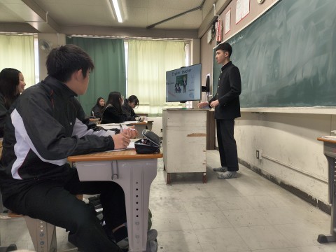 本日もスピーチをしております!たくさん使ったこのタブレットPCとも、お別れ。来学期より新しい端末を使って授業をします。授業の終わりに「こんなデータもあったな…」と名残惜しんでる生徒もちらほら…3学期もまた頑張りましょうね!ただ!!46期生、タブレットを含む道具の使い方には少し注意が必要。机の上に出しっぱなしで遊びにいったりすることのないよう、丁寧に扱おう。