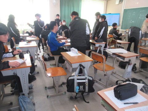 第二回学力診断テストが返却されました。体育の授業は勉強のストレスを発散するために?!普段以上に声をかけて、男子はハンドボール・女子はバスケットボールに取り組んでいます。さて、進路懇談は再来週ですが、それ以外にも担任の先生・進路指導の先生(もちろん私でも!!)に、志望校や進路の相談は気兼ねなくしてくださいね。