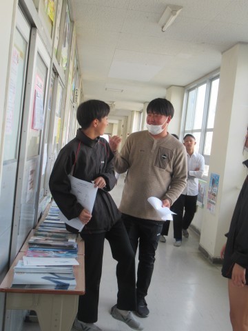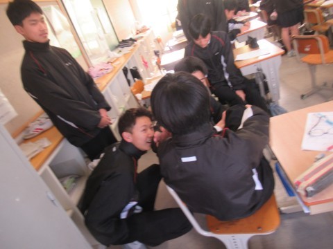 (ある生徒に、休日の出来事を聞くと、試合が思ったような結果にならなかったようで。「もうやる気なくした」と落ち込んでいた彼ですが、休み時間に友達がかけよって話をしているとどんどん笑顔も戻ってきていました。友達の力ってすごいなぁ)