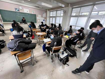 授業から解放されて、友だちとワイワイ語り合いながら、名残惜しそうに教室に残っています。