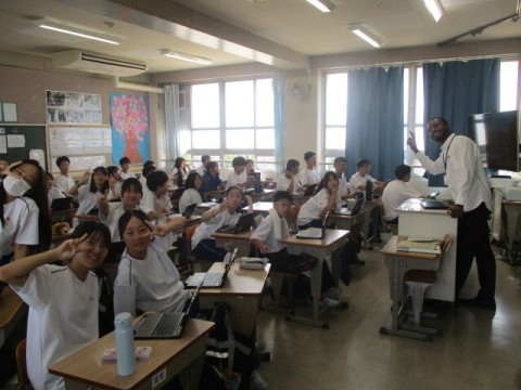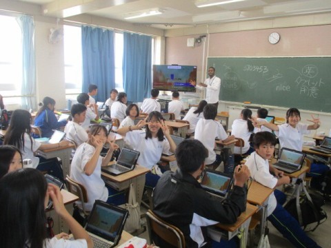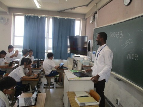 トベンナ先生の英語の授業です。タブレットを使って問題を解き、学習した内容を振り返ります。