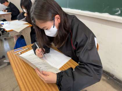 ささいな音すらはばかれるほどの静けさに満ちた教室です。みんな真剣そのもの!