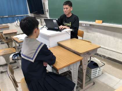 国語のオンライン授業ではチャット欄を使って生徒から意見を聞いて交流できています。