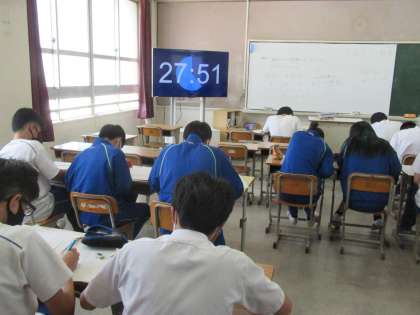 3年生は、来週行われるチャレンジテストと学力診断テストに向けて、過去問に取り組むなどをして学力アップを目指しています。
