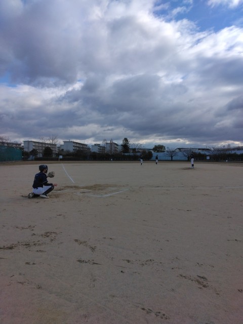 寒空のもと、久しぶりの3年生との野球はよく盛り上がりました(^^)